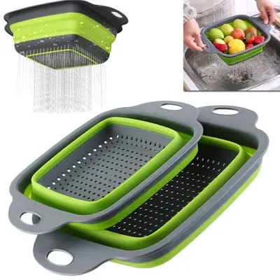 Komplet dveh izjemno praktičnih silikonskih cedil! Je odlična rešitev, ki prihrani dragocen prostor. V zloženem stanju je višina posameznega cedila le 2 cm, kar močno olajša transport ali shranjevanje v omari. Uspešni bodo v turističnih aplikacijah ali v majhnih kuhinjah. V raztegnjenem stanju dosežejo višino 8 cm, kar omogoča priročno izpiranje in odcejanje sadja, zelenjave ali testenin.