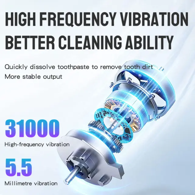 Temeljito čiščenje: Ta sonična električna zobna ščetka uporablja visokofrekvenčne zvočne valove (31000 gibov na minuto) za čiščenje zob, učinkovito odstranjevanje zobnih oblog, zobnega kamna, rumenih madežev, slabega zadaha in madežev od kajenja ter izboljšanje ustnih težav.
