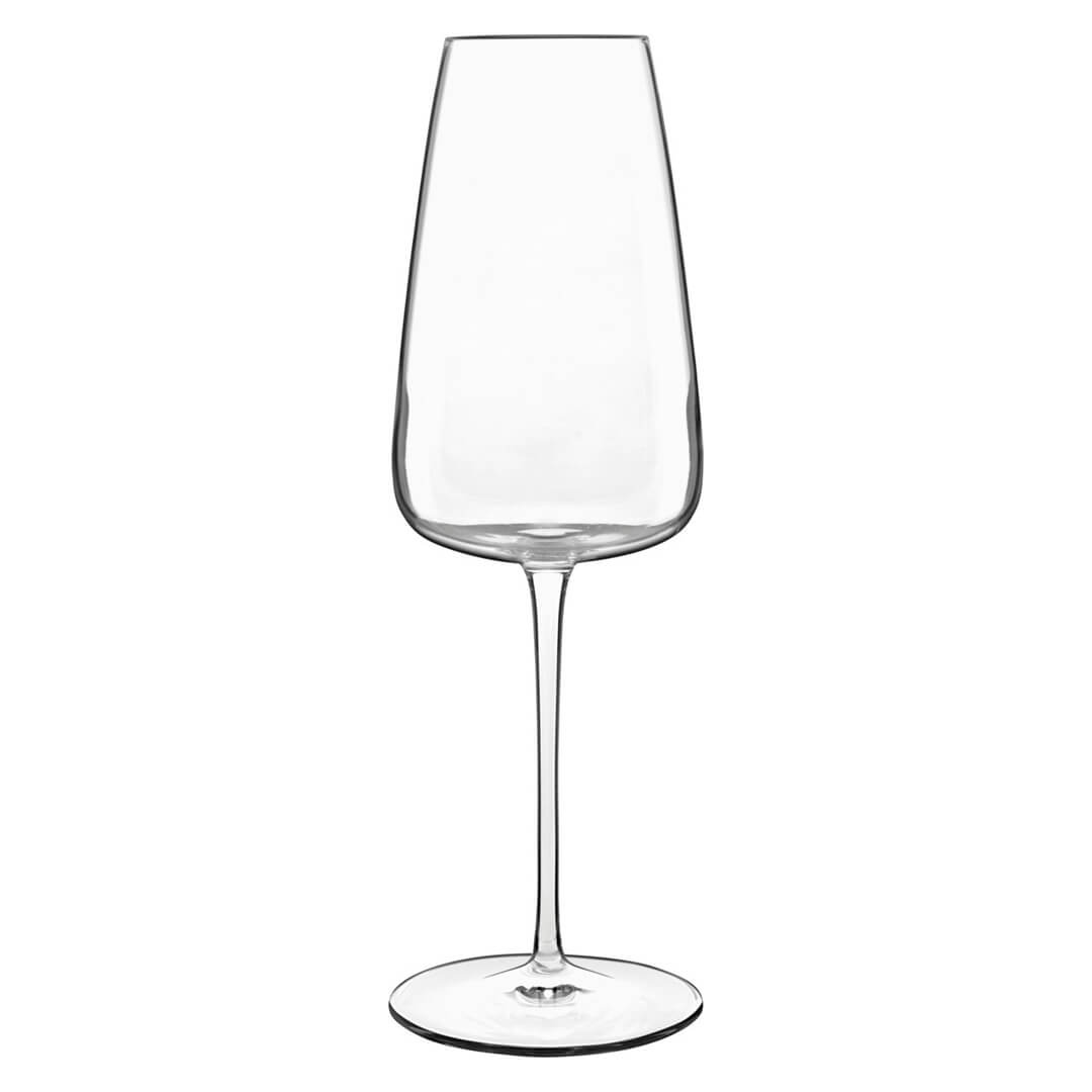 Šestdelni set kelihov iz linije Meravigliosi združuje brezčasno eleganco, popolno funkcionalnost in vrhunsko kakovost izdelave. Kozarci so izdelani iz ultra prozornega kristalnega stekla SON.hyx®, ki je brez svinca in težkih kovin ter navdušujejo z briljantno prosojnostjo in sijajem. Zaradi strojno pihane izdelave so izredno lahki, a hkrati trdni in odporni na udarce ter razbitje. Njihovo vitko steblo, ojačano s titanom, povečuje vzdržljivost, medtem ko tanek proti odkruškom odporen rob zagotavlja prijeten stik z usti in popolno izkušnjo pitja. Kozarec je zasnovan za peneča vina, kot so šampanjec, prosecco in vina, pridelana po tradicionalni metodi. Oblika in ravno dno pospešujeta razvoj kompleksnih obstojnih arom in ustvarjata učinek dekanterja. Zožen zgornji del usmerja arome neposredno proti nosu, kar poudari svežino in značilno aromatiko penečih vin. Kelihi so estetsko dovršeni in hkrati praktični, saj so primerni za pomivanje v pomivalnem stroju. Kolekcija Meravigliosi predstavlja popolno ravnovesje med italijanskim dizajnom, napredno tehnologijo in brezčasno lepoto – idealna izbira za vse ljubitelje penečih vin.
