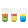 Set kozarcev Nuance Velo je izdelan iz prozornega stekla, ki ga krasi spiralni vzorec in obarvan spodnji del, ki mu daje živahen in unikaten videz. V setu so trije kozarci v različnih barvah (400ml), ki so primerni za serviranje vode, soka in ostalih osvežilnih pijač. Primerni so za pomivanje v pomivalnem stroju.