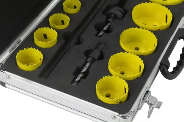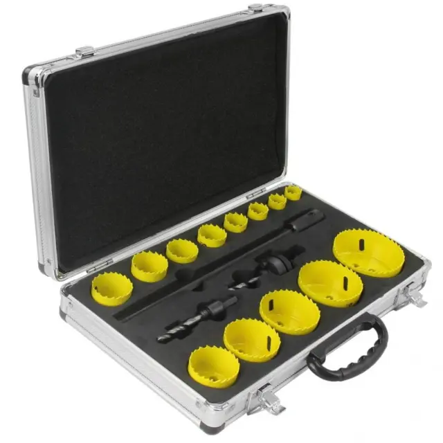 – Za materiale, kot so: jeklo, nerjaveče jeklo, barvne kovine, aluminij, les, plastika, večslojni materiali. – Težke industrijske žage za luknje za standardne in globoke postopke rezanja. – Kompleti za vodovodarje, električarje in splošne namene. 2 kos zatičev: 3/8 “šestnajstiška, 7/16” šestnajstiška Adapter Podaljšek Aluminijast kovček V setu: 19, 20, 22, 25, 28, 32, 35, 38, 44, 51, 57, 64, 76 mm