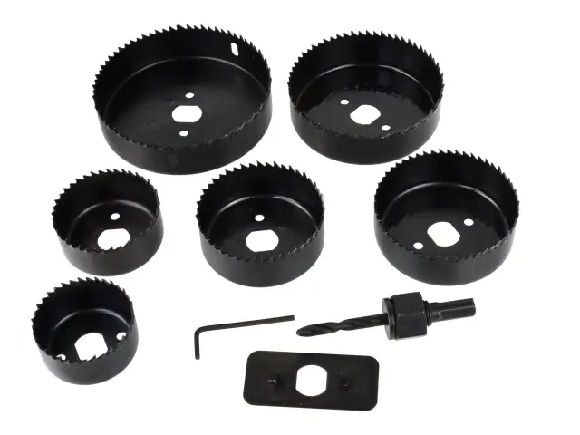 Komplet žag za luknje 51 – 102 mm za les, mavčne plošče, iverne plošče in plastiko.