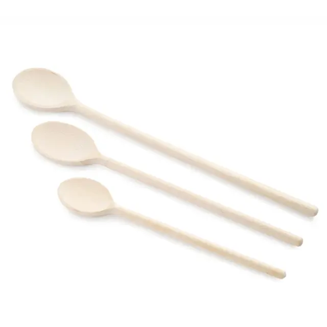 Eva set treh lesenih kuhalnic dolžine 25, 30 in 35 cm z ovalno oblikovanim spodnjim mešalnim delom, lahko uporabite tudi kot žlico. Ni primerno za pomivanje v pomivalnem stroju.