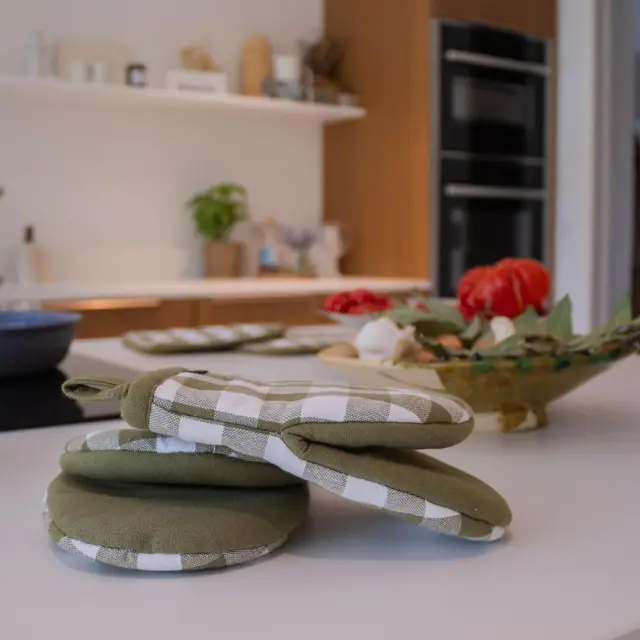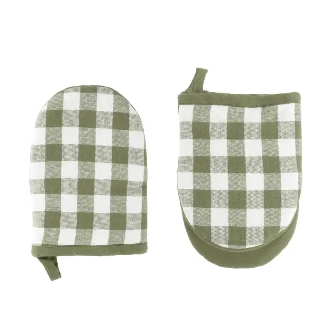 Set dveh kuhinjskih prijemalka Gingham je izdelan iz 100 % bombaža s karo vzorcem. Prijemalki nudita trden oprijem pri premikanju vroče posode in ponv. Zahvaljujoč praktični zasnovi in priročni zanki za obešanje ju je enostavno shraniti.