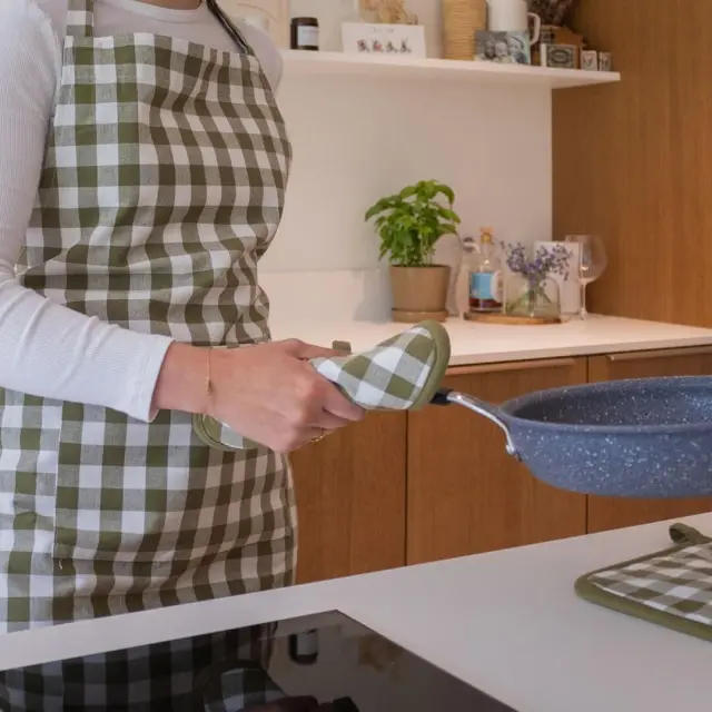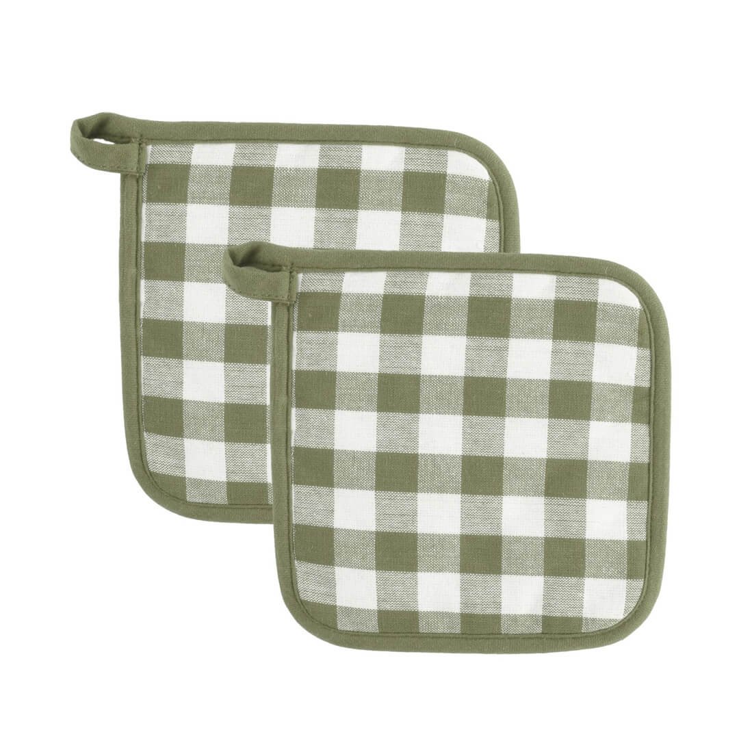 Set dveh kuhinjskih prijemalka Gingham je izdelan iz 100 % bombaža s karo vzorcem. Kvadratni prijemalki nudita zaščito pri premikanju vroče posode in ponv. Zahvaljujoč praktični zasnovi in priročni zanki za obešanje ju je enostavno shraniti.