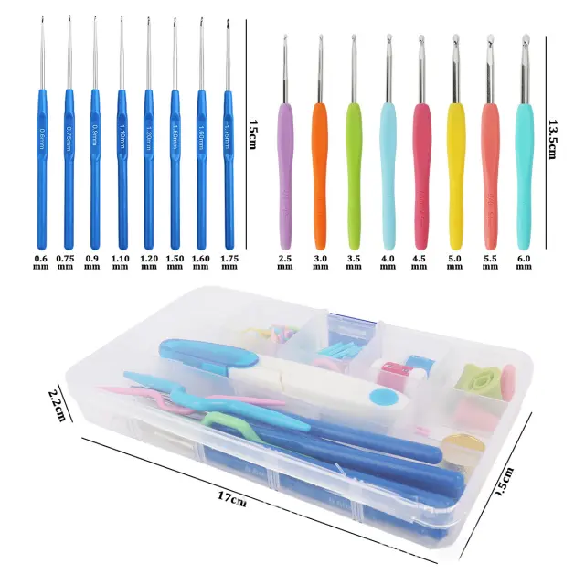 Vsestranski komplet za vse projekte: Ta obsežen komplet vključuje različne velikosti kavljev za širok razpon teže preje in tipov projektov. Ne glede na to, ali ste začetnik ali izkušen kvačkar, boste našli popolno kljuko za svoje potrebe.