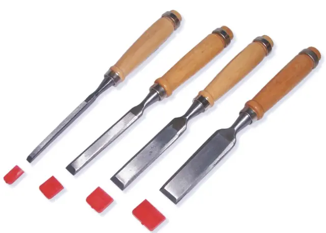Komplet mizarskih dlet z lesenimi ročaji. Širina dlet: 6, 12, 18 in 24 mm. Dolžina: 230 mm.