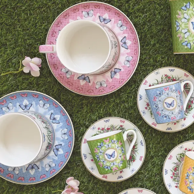 Set lončkov s čudovitim motivom metuljem na rožnati in modri podlagi, je del romantične linije Spring Parade, italijanske blagovne znamke Easy Life. Izdelan je iz kakovostnega porcelana, ki je primeren za uporabo v mikrovalovni pečici in pomivanje v pomivalnem stroju. Lončka, prostornine 300 ml, sta pakirana v lični embalaži, zato sta lahko lepo darilo.