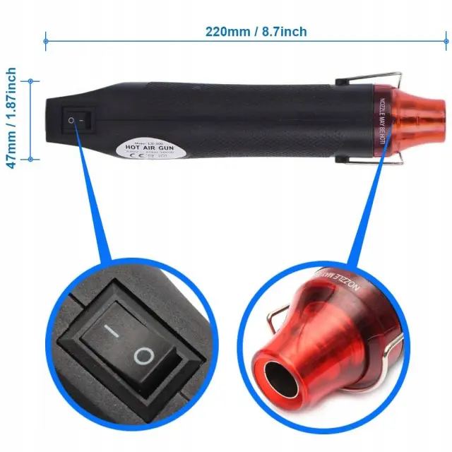 ✅ Prilagodljivost nastavitev: Ročaj omogoča prilagodljivost nastavitev delovanja. Tok vročega zraka lahko natančno usmerite na območje, ki ga je treba segreti, in tako dosežete želeni učinek.