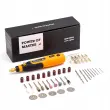 ✅ V kompletu najdete različne vrste konic in diskov, ki jih lahko enostavno zamenjate in prilagodite konkretnim nalogam. Tako lahko orodje prilagodite svojim potrebam in dosežete najboljše rezultate pri vsakem delu.