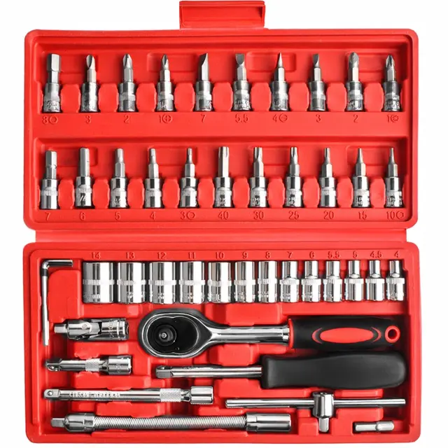 Set sestavljen iz 46 elementov je pakiran v praktičnem kovčku. Orodja se bodo uporabljala pri številnih popravilih v delavnicah ali doma, z njimi boste lahko privili številne vrste vijakov, prav tako vam bodo omogočili zamenjavo vžigalnih svečk.