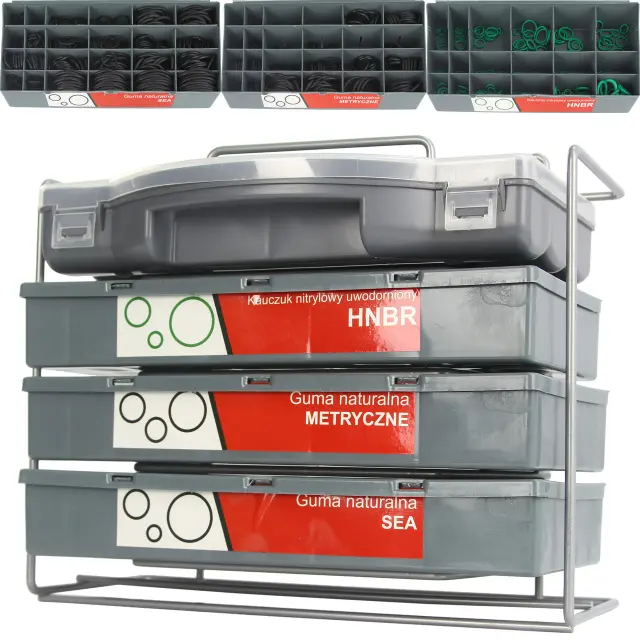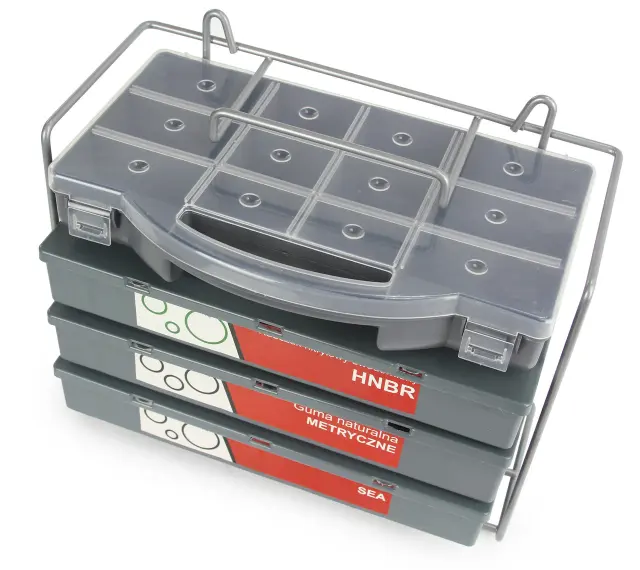 Poleg tega ena prazna škatla, zahvaljujoč kateri lahko na nedostopna mesta odnesemo samo potrebne o-ringe, ne da bi morali nositi vse škatle.