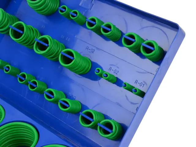 Profesionalni komplet O-obročev za klimatsko napravo s premerom lukenj od 3,15 do 50 mm in debelino 1,8, 2,65 in 3,5 mm.