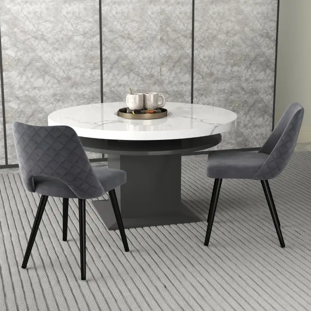 Stabilen in trpežen okvir: Ta jedilni stol ima trpežen okvir in nastavljive podstavke za noge, ki zagotavljajo vrhunsko stabilnost in togost. Z nosilnostjo 150 kg je ta sodobni stol zanesljiv in varen, da izpolni vaše potrebe.