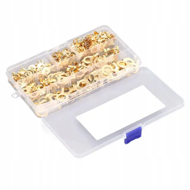 Rosfix Set Obročastih Konektorjev M3–M10 – 450 Kos, Medeninasti, Visoka Prev. | V Prozorni Škatli