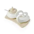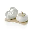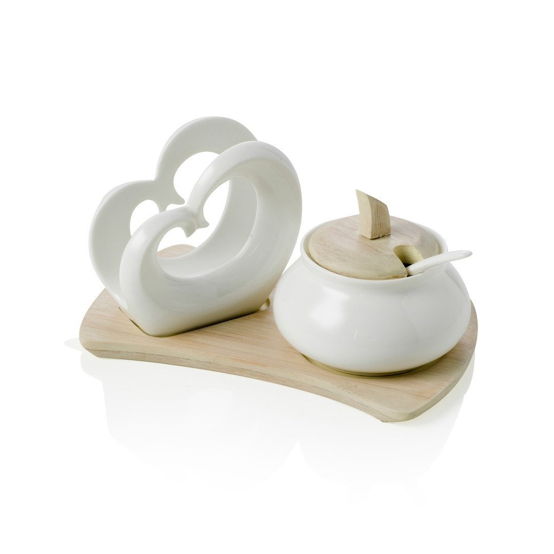 Brandanijevo držalo za prtičke v obliki dvojnega srca in posoda za sladkor sta elegantna dodatka izdelana iz belega porcelana in opremljena s sodobnim podstavkom iz naravnega bambusa. Prefinjen, uporaben in hkrati dekorativni element bo zagotovo polepšal vsako mizo.