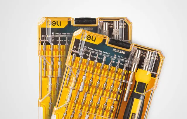 Kaj še naredi uporabo izvijačev Deli tako enostavno in priročno? V kompletu je praktičen ročaj, ki je izdelan iz visokokakovostne plastike in prevlečen z gumo. Zahvaljujoč temu se odlično prilega vaši roki in ne zdrsne ven. Prav tako je odporen na praske in maščobe.