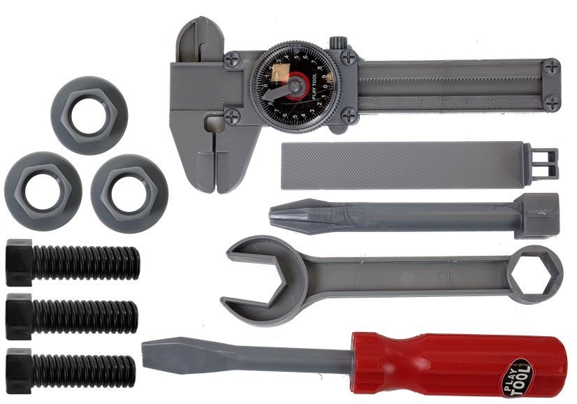 Ta odličen komplet vključuje dobro izdelana in polirana orodja, v celoti izdelana iz plastike. Zahvaljujoč kovčku, v katerega je zapakirano orodje, jih boste po končanem delu vedno lahko skrili na svoje mesto. Vsak mali navdušenec nad lastnimi rokami bi moral imeti orodja, da postane očetov in dedkov pomočnik ter v primeru okvare hitro odpravi napako. Komplet bo marsikateremu pomočniku pri igranju na DIY dal veliko zabave. Vrtalnik se začne vrteti, ko pritisnete gumb.