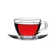 Set skodelic za čaj Basic je izdelan iz kaljenega in vzdržljivega stekla. Prozorno steklo je odporno na spremembe toplote in je primerno tudi za uporabo v mikrovalovni pečici. V setu je 6 elegantno oblikovanih skodelic s prostornino 240 ml in 6 okroglih podstavkov. Skodelice so primerne za serviranje čaja, kave, kuhanega vina in ostalih toplih napitkov. Lahko jih pomijete v pomivalnem stroju.