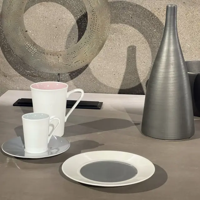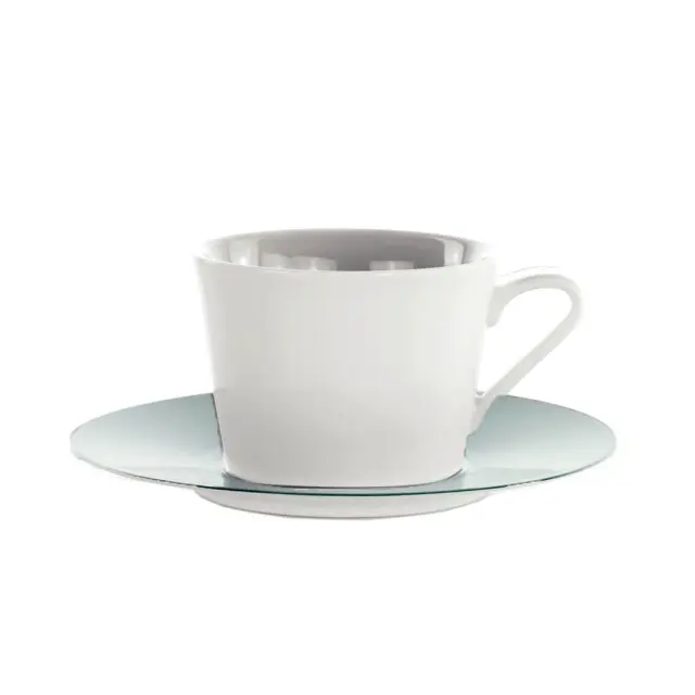 Set skodelic za čaj Loop Ardesia, oblikovalca Andree Castrignana, zaznamuje prefinjen dizajn, ki izmenjuje čistost bele barve s sivo-modrim odtenkom, ki poskrbi za brezčasno eleganco. Set šestih skodelic s prostornino 270 ml in podstavkom premera 18 cm je izdelan iz odpornega porcelana, ki je žgan pri zelo visokih temperaturah (1.260°C). Barvni trakovi poživijo belo barvo. Set je primeren za uporabo v mikrovalovni pečici in pomivanje v pomivalnem stroju.