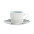 Set skodelic za čaj Loop Balena, oblikovalca Andree Castrignana, zaznamuje prefinjen dizajn, ki izmenjuje čistost bele barve z modrim odtenkom, ki spominja na barvo kita. Set šestih skodelic s prostornino 270 ml in podstavkom premera 18 cm je izdelan iz odpornega porcelana, ki je žgan pri zelo visokih temperaturah (1.260°C). Barvni trakovi poživijo belo barvo. Set je primeren za uporabo v mikrovalovni pečici in pomivanje v pomivalnem stroju.