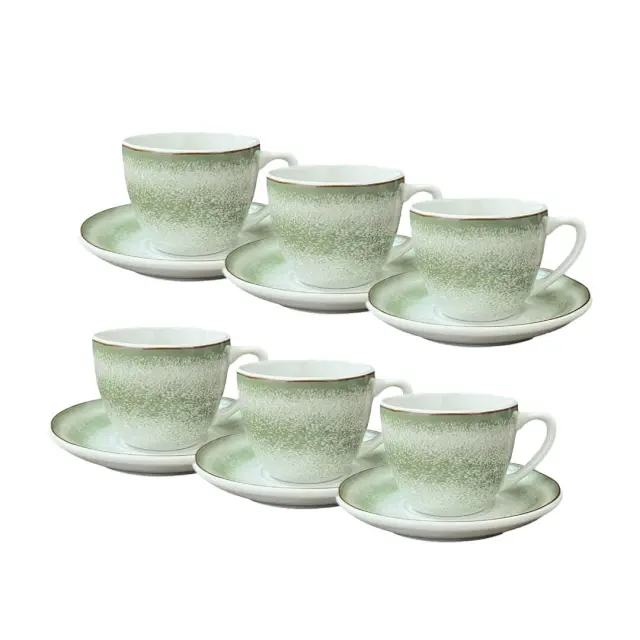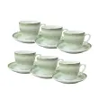 Set šestih skodelic Rainbow s podstavkom in prostornino 90 ml je popolna izbira za vse ljubitelje močne črne kave. Elegantno oblikovane skodelice so ravno pravšnje velikosti za postrežbo pristnega italijanskega espressa, medtem ko podstavki poskrbijo za urejeno in estetsko postavitev na mizi. Skodelice so idealne za vsakodnevno uporabo ali za posebne trenutke ob kavi s prijatelji. Izdelane so iz zeleno obarvanega porcelana z rjavim robom, ki združuje funkcionalnost in stil. Skodelice so primerne za pomivanje v pomivalnem stroju ter uporabo v mikrovalovni pečici. NAMIG: Dopolnite jih z ujemajočim se setom krožnikov Rainbow.