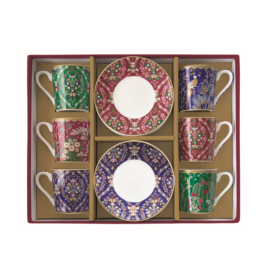 Set 6 skodelic za espresso Eclectic Chic navdušuje z eklektičnim stilom, kjer se mešajo na videz nezdružljivi elementi z okusom in premišljenostjo. Set je izdelan iz porcelana v toplih in prefinjenih tonih, s pridihom elegance in šarma. Vsaka skodelica ima prostornino 100 ml, zato je idealna za močnejši in intenzivnejši okus črne kave. Set vključuje tudi podstavek v ujemajoči se barvi in vzorcu, ki dopolnjujejo unikatni dizajn skodelic. Pakirano je v lični darilni embalaži, zato je ta komplet popolno darilo za ljubitelje kave in estetike. Primerno za uporabo v mikrovalovni pečici in pomivanje v pomivalnem stroju.