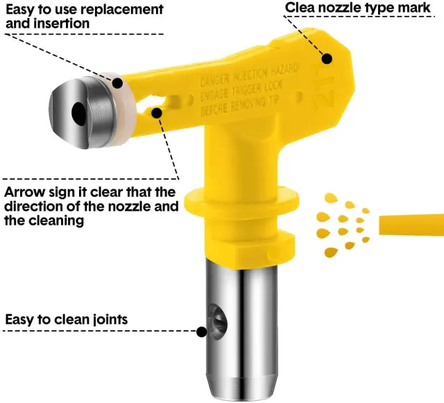 Konica brezzračne brizgalne pištole je enostavna za prenašanje in vzdržljiva za uporabo. V glavnem odobren kakovosten material iz volframovega jekla.