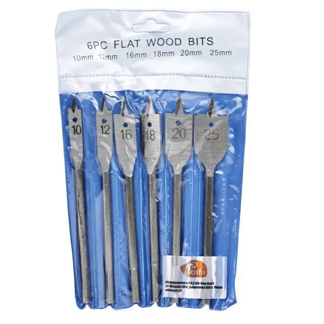 Rosfix Set Ploščatih Svedrov za Les – 6 Kos, 10–25 mm | Ogljikovo Jeklo, Za Les, Mavčne Plošče, Plastiko