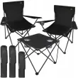 Uživajte v udobju in praktičnosti kjerkoli z zložljivim kompletom kamp stolov in mize! Ta lahek, a trpežen set je popolna rešitev za kampiranje, piknike, plažo, ribolov ali vrtne zabave. Vzdržljiv Oxford material in močan kovinski okvir zagotavljata stabilnost in dolgo življenjsko dobo. Komplet je zložljiv in enostaven za prenašanje, kar omogoča priročno uporabo kjerkoli!