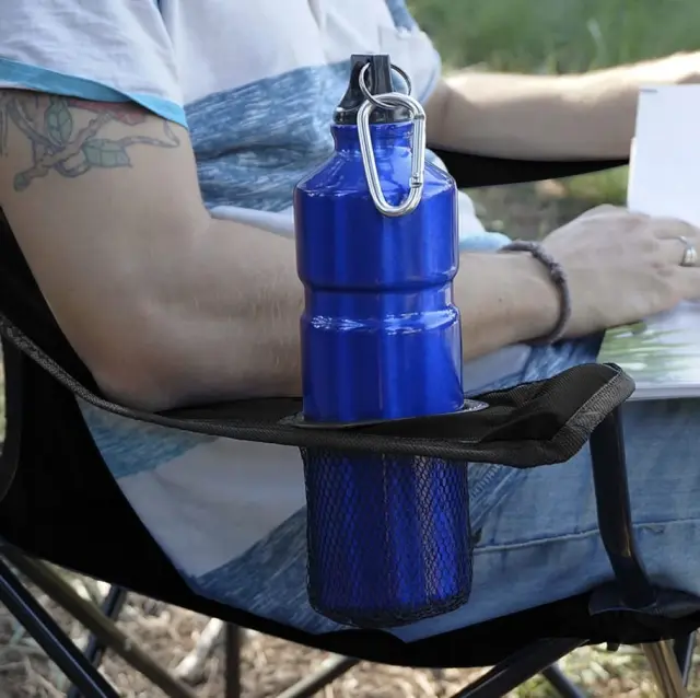 udobje in priročnost – nastavljivi nasloni za roke, ergonomski sedež in praktičen kotiček za pijačo poskrbijo, da turistični komplet zagotavlja popolno udobje tudi med dolgimi urami ribolova ali kampiranja