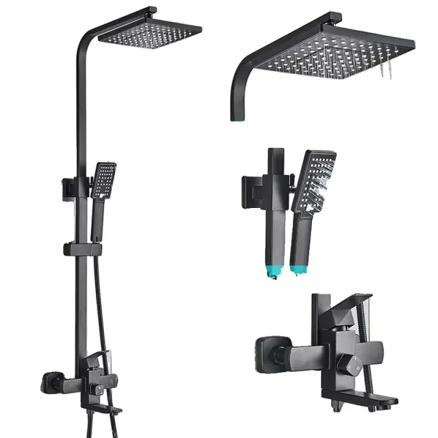 Set tuš pipa iz 304 nerjavečega jekla, nastavljiva višina, sodoben dizajn, črn ABS