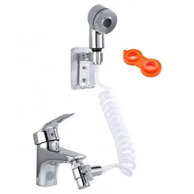Srebrni tuš set, sestavljen iz snemljive tuš glave na gibljivi cevi. Dovolj je, da garnituro priključite na klasično armaturo za kopalno kad in ventil nastavite na ustrezen položaj za uporabo prhe ali pipe. V kompletu je tudi namenski nosilec za pritrditev in obešanje baterije na steno. Slušalka ima funkcijo klasične prhe in običajnega curka vode.