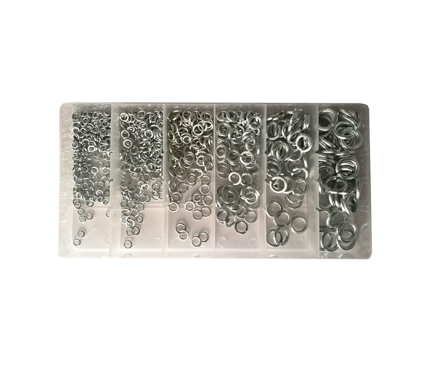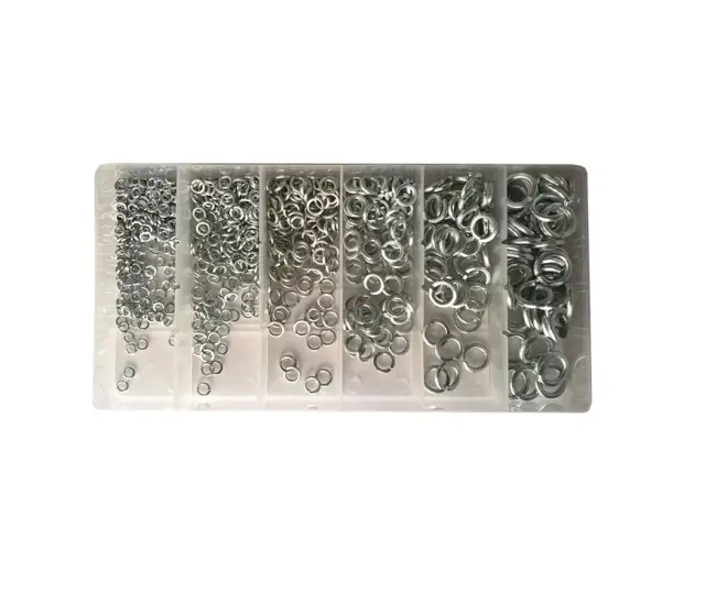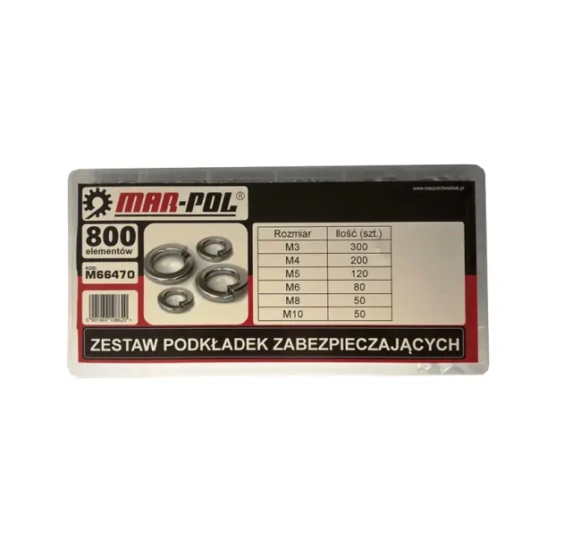 Komplet podložk iz nerjavnega jekla od velikosti M3 do M10. M3 – 300 kosov. M4 – 200 kosov. M5 – 120 kosov. M6 – 80 kosov. M8 – 50 kosov. M10 – 50 kosov.