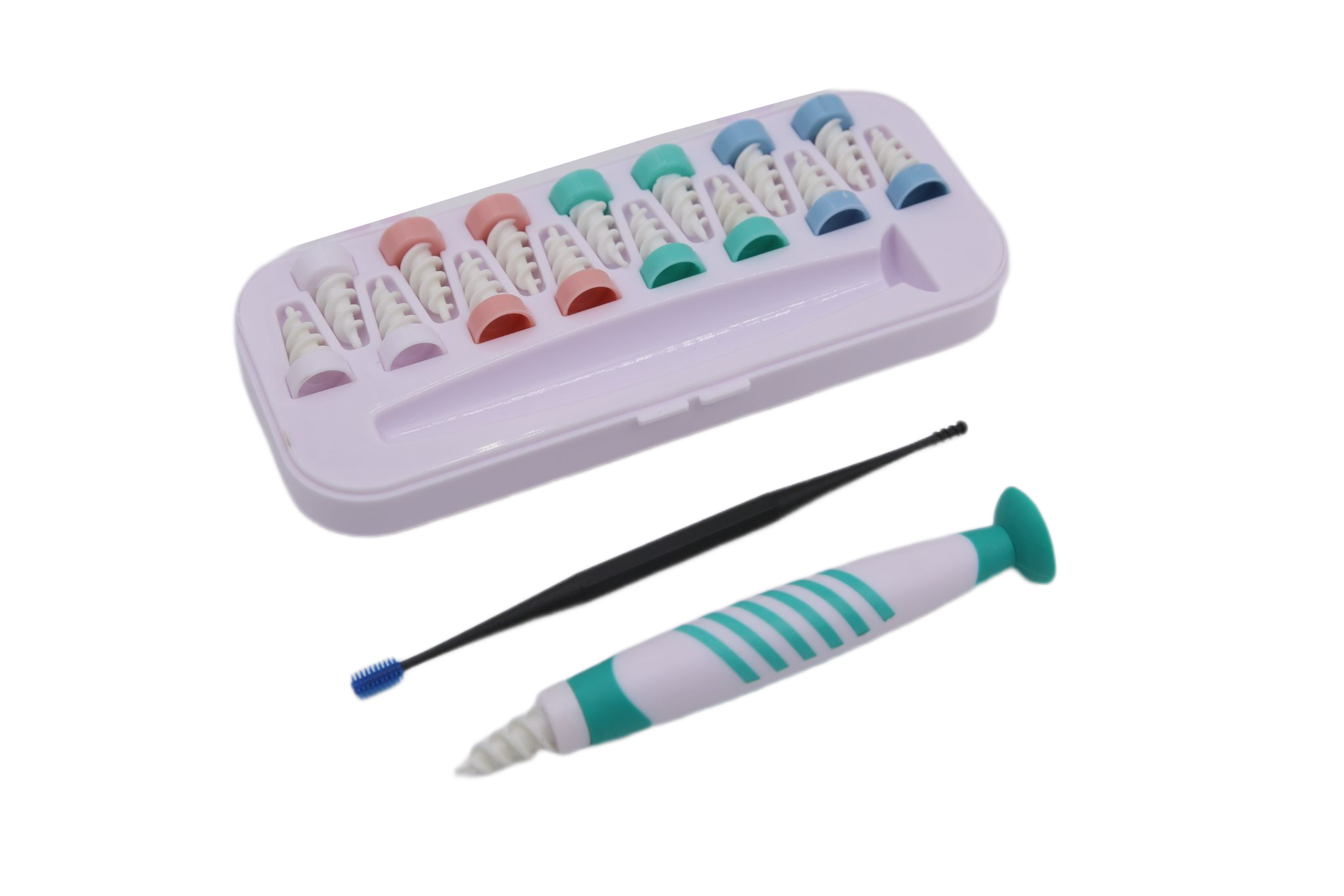 Komplet je izdelan iz mehkega in elastičnega ABS materiala, zato je nestrupen, neškodljiv, mehak in elastičen. Spiralna oblika in mehak material omogočata enostavno in hitro odstranjevanje ušesnega masla, ne da bi poškodovali bobnič.