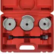Set za odstranjevanje ležajev zadnje osi, izdelan iz kvalitetnega karbonskega jekla, je osnovno orodje vsakega mehanika in je primeren za Renault & Laguna. Zasnovan je za menjavo ohišja ter za sestavljanje in razstavljanje zadnje osi.