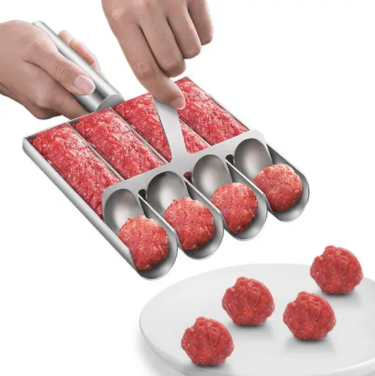Enostavna izdelava mesnih kroglic: Ta set za izdelovanje mesnih kroglic poenostavi postopek ustvarjanja popolno oblikovanih mesnih kroglic. Inovativna oblika vam omogoča enostavno zajemanje in oblikovanje mesne mešanice, kar zagotavlja enakomerno velikost in obliko za enakomerno pečenje.