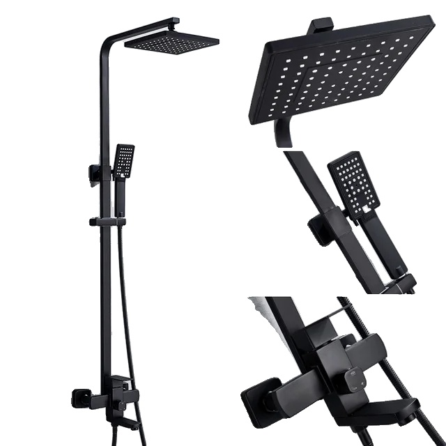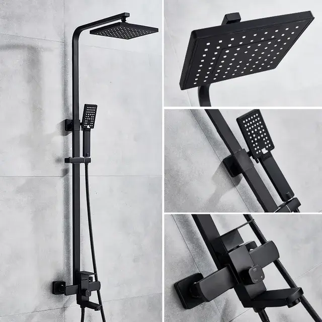 Set za tuširanje, montiran na steno, nadzor hladne in tople vode, sodoben dizajn, mat črna