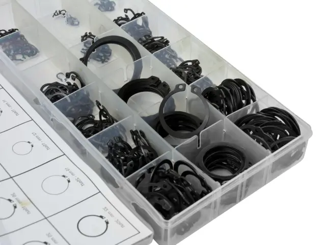 Set 300 zunanjih obročev Seeger v velikostih 3 – 32 mm.