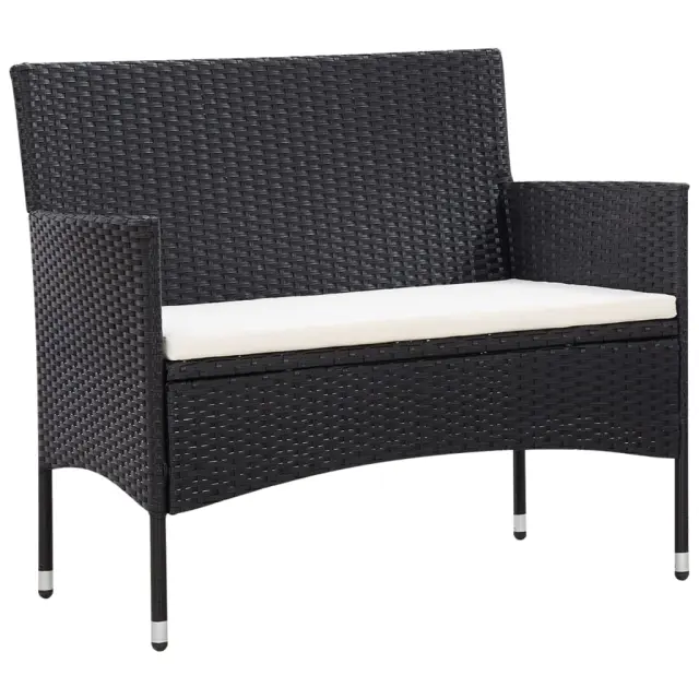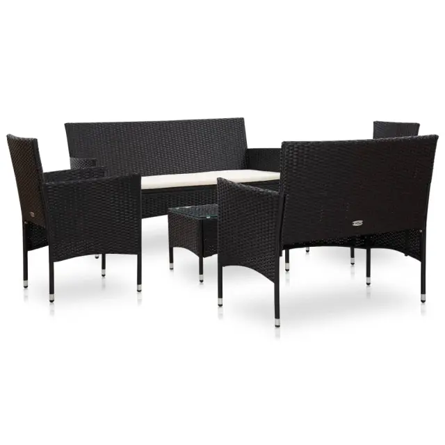 Seti vrtnega pohištva - Vrtna garnitura z blazinami 5-delna poli ratan črna