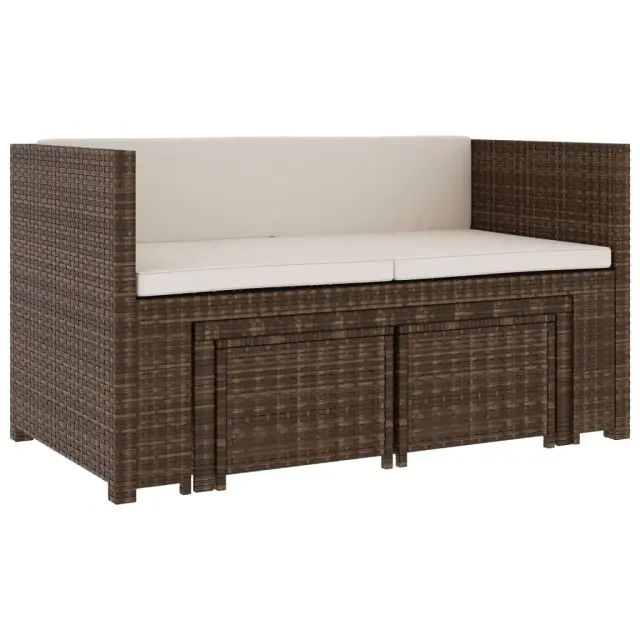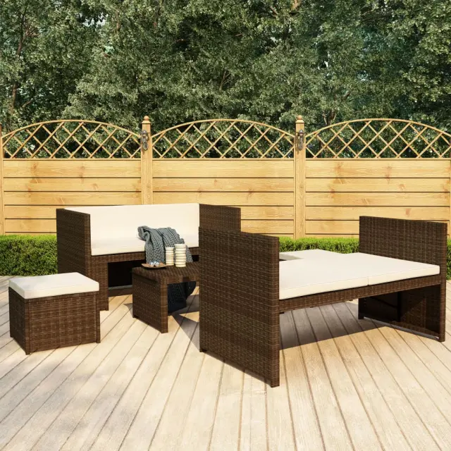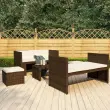 Seti vrtnega pohištva - Vrtna garnitura z blazinami 5-delna poli ratan rjava