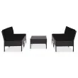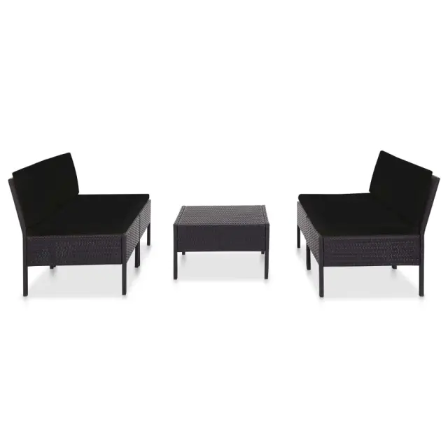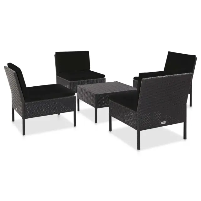 Seti vrtnega pohištva - Vrtna garnitura - Vrtni pohištvo set z blazinami 5-delna poli ratan črna