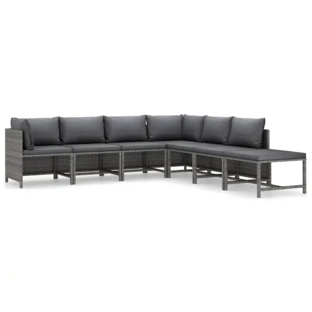 Seti vrtnega pohištva - Vrtna garnitura z blazinami 7-delna poli ratan siva