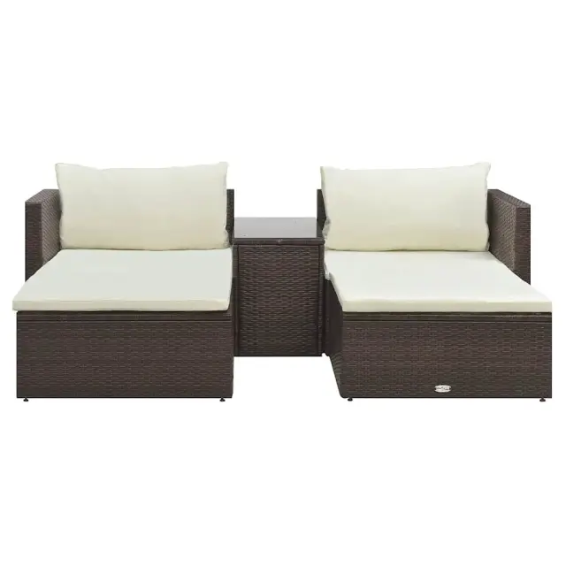 Seti vrtnega pohištva - Vrtna garnitura - Vrtni pohištvo set z blazinami 5-delna poli ratan rjava