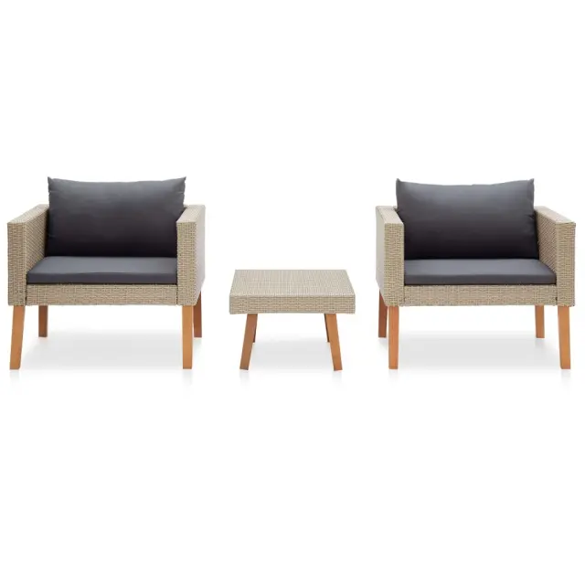 Seti vrtnega pohištva - Vrtna garnitura - Vrtni pohištvo set z blazinami 3-delna poli ratan bež