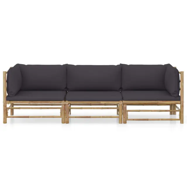 Seti vrtnega pohištva - Vrtna garnitura - Vrtni pohištvo set z blazinami 3-delna temno siva bambus