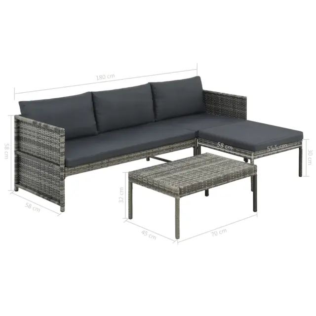 Seti vrtnega pohištva - Vrtna garnitura - Vrtni pohištvo set z blazinami 3-delna poli ratan siva