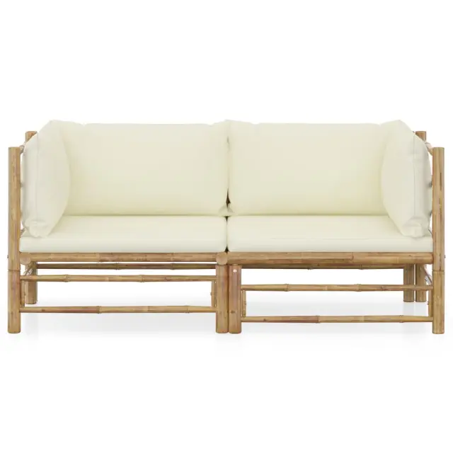 Seti vrtnega pohištva - Vrtna garnitura 2-delna s kremno belimi blazinami bambus