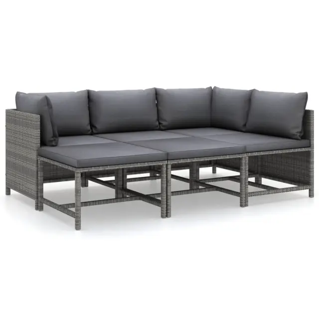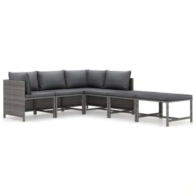 Seti vrtnega pohištva - Vrtna garnitura - Vrtni pohištvo set z blazinami 6-delna poli ratan siva