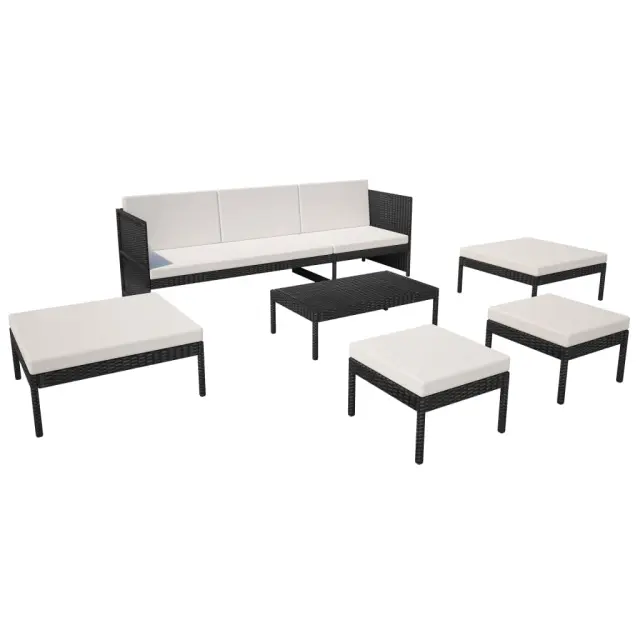 Seti vrtnega pohištva - Vrtna garnitura - Vrtni pohištvo set z blazinami 6-delna poli ratan črna